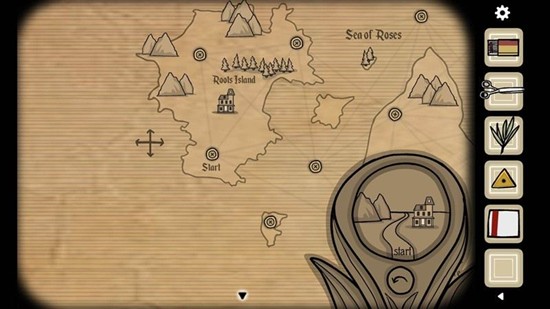 地球仪界面右下角的放大镜图标代表当前行进路线。比如放大镜显示START时,说明需要从起点位置开始操作。