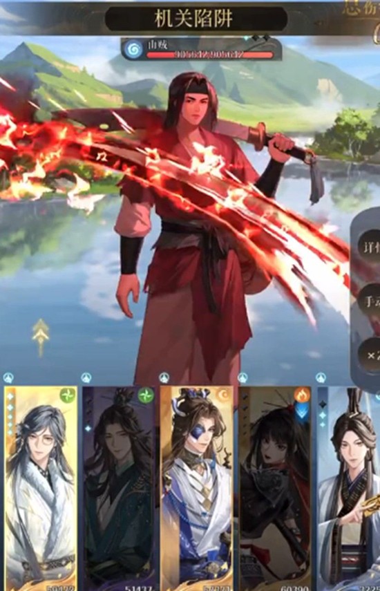 甄宓作为队伍的主要输出角色,能够对敌人造成高额伤害并提供控制效果。陈登则能为队伍提供锁血能力和持续增益,在战斗中慢慢消耗山贼的血量。