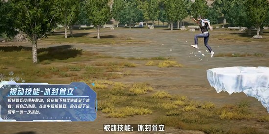 绝对零度的被动技能名为"冰封耸立"。当玩家按住跳跃按钮并移动时,会在脚下持续生成多个冰台,随着跳跃高度的增加,冰台的数量也会增多。此外,在空中短按跳跃,会在脚下生成单一的一块冰台。