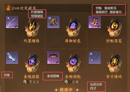 必带内功: 鸣镝裂风 破霄 (其他内功根据词条元素选择以下即可)