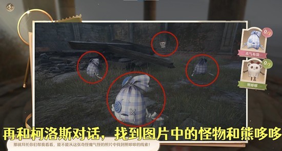 再次和柯洛斯对话,在照片里找到熊哆哆和三个魔气怪;