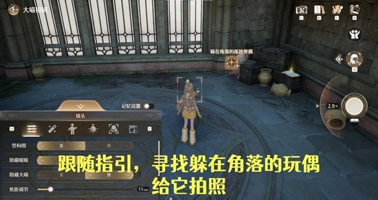 跟随指引,前往行宫内找到熊哆哆,和它对话,把照片交给它;