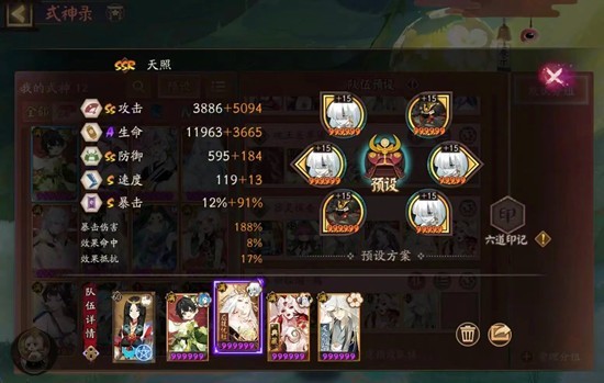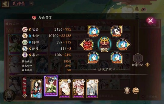 用的天照,小美,不见岳,千姬,SP莹草,看了很多攻略感觉千姬是无法替代的,可以打火增伤解毒,特别是第九层神启荒,使用因幡的愿力会被炸更多次数。我是纯小登,御魂练度都比较差,天照六号位暴击还是五星御魂