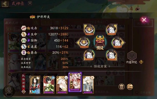 伊邪那美,元兴寺夜荒魂,指标命中,速命生,速度>180(其实我没做出来hh),比千姬慢,全队第二快就行;技能x55