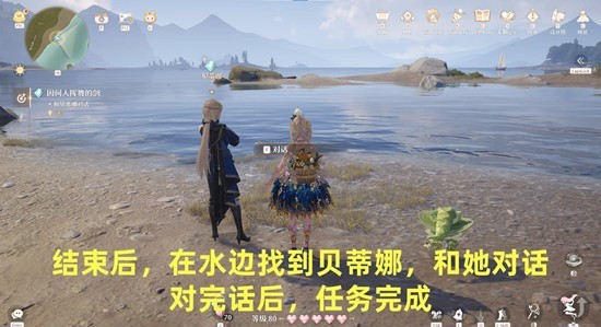 对完话后,跟随指引,找到在水边的贝蒂娜,和她对话;