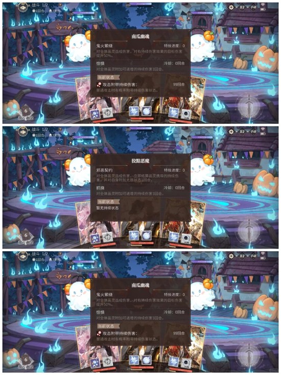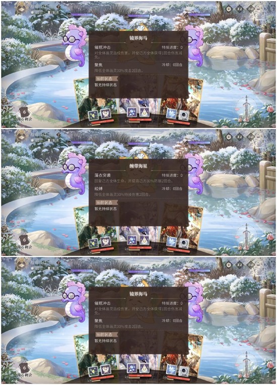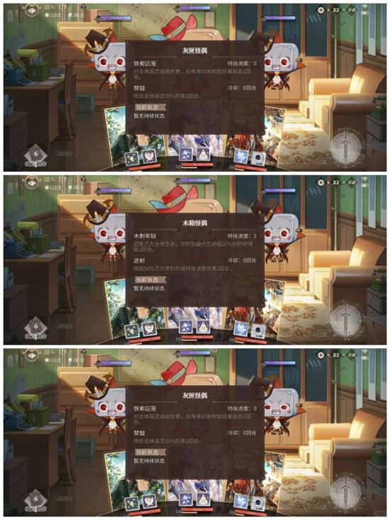 降防:第一只怪进战就放,我方降防结束时第二只怪接着放。