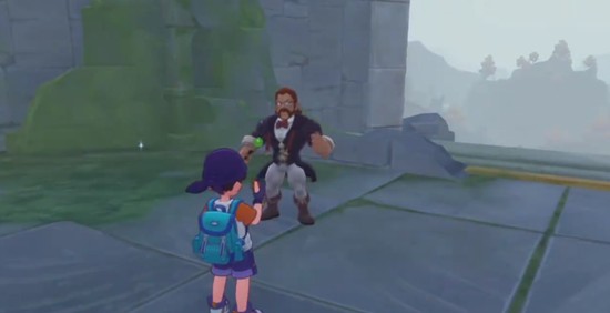 尼尔森的位置处于浮落幽谷的风眠圣所废墟区域,需先进入水眷属秘境,从右侧的挽风屏障进入后继续前行即可抵达。建议使用飞行类精灵直接飞上高台,避免因爬墙消耗过多体力导致无法到达。该NPC外形为红发大叔,与之互动后将开启两轮对战挑战。第一轮拥有两点魔力值,且每回合会随机使一个技能减少三点耗能,这一特性会影响战斗节奏,需提前规划好技能释放顺序。