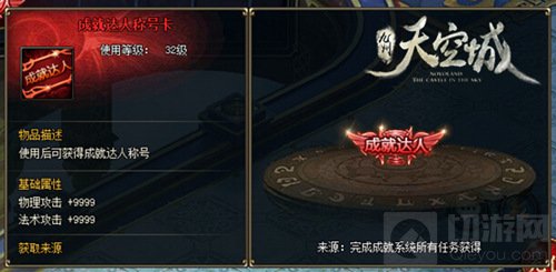 完成每一个成就,不光能推动总成就的进度,更能获得意想不到的海量资源。玩家每达成一个小项的成就,都会获得经验、金钱、培元丹、寻访令、结义令、突破丹、麒麟魄等珍稀道具。而如果完成了三个大项,更会获得《九州天空城》同名页游终极称号“成就达人”,物攻和法攻+9999!