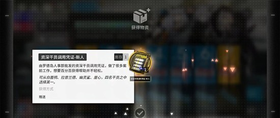 2、背包里送了2张自选五星券,推荐几个刚玩的群友选的都是拉普兰德(对空近卫,前期输出,和六星自选券的银灰差不多定位不要重复选)/红(快速复活)/蓝毒和白面鸮(群奶);