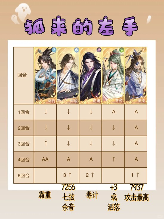 基本上吃拐后周瑜一个大就带走了,对面板攻击要求非常低,实在不够刘豹再补点,如果需要刘豹补伤就必须董奉伤害最高。刘瑜持续发力中