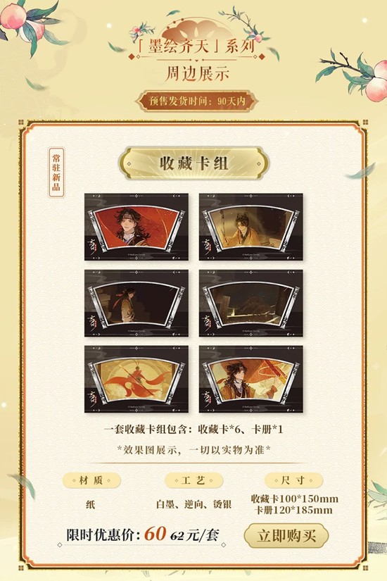 忘川风华录全新周边上新!「星桥鹊架」系列镭射票限时预售开启~活动期间,「忘川风华录手游周边商城」首次下单成功即赠“名士猫贴纸·叁”1张,全店单笔订单实付金额每满108元赠送“马踏飞沙纪念卡”1张,新品享限时优惠价,一起来和小编看看吧~