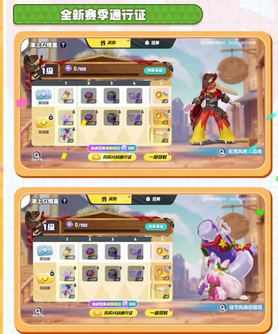 全新通行证【漠上炊烟直】来袭!拓荒风格火焰鸡、佳节风格巨锻匠、排位好手套装(深蓝)等精美奖励等你来领!购买通行证后,您可以通过完成任务,提升通行证等级,解锁更多的奖励。