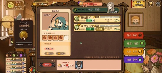 火山的女儿的核心玩法围绕着女儿的全方位养成展开。玩家将扮演一位父亲,在火山脚下陪伴女儿从幼年走向成年。你可以通过日常互动、课程学习、技能训练等方式提升她的力量、智力、敏捷与耐力四项基础属性。性格的塑造同样重要,不同的选择会影响女儿的性格倾向,比如勇敢、温柔或独立。这些性格不仅影响对话选项,还会对后续剧情走向产生作用。此外,烹饪、园艺、炼金等生活技能也是成长的重要组成部分,每项活动都能带来属性增益和剧情解锁。