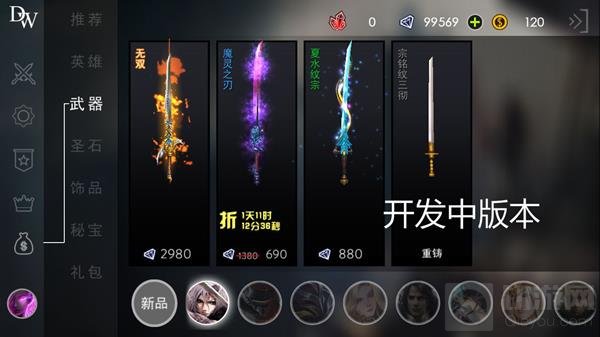 勇士可以使用金币,武器碎片,钻石等道具重铸初级武器获得高级武器的属性(不更改武器的外观)。