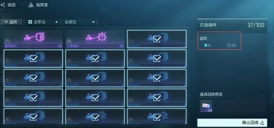 R级通用插件提供的属性增幅相对较小,但胜在种类多样且获取便捷。这类插件可用于低星角色或新手期临时装配,避免战力断层。此外,当手中积攒较多低阶插件时,可通过回收系统进行处理。回收功能位于队员插件装备界面右侧,支持按品阶批量操作。R级插件回收后可获得信赖之证,SR及以上则额外产出信赖之光,这些材料可用于后续资源兑换或升级。