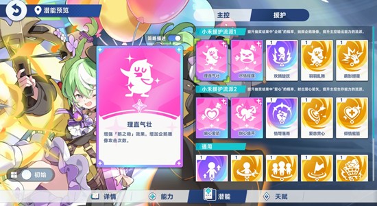 在潜能搭配方面,小禾主要分为鹅之吻流派与爱之吻流派。当援助技能中企鹅数量多于爱心时,激活鹅之吻流派,推荐选择理直气壮、尽情摇摆和欢腾旋跃等潜能,以强化攻击加成效果;若爱心数量占优,则进入爱之吻流派,偏心爱箭、甜心盛开和情弩落雨能有效提升主控生存能力,尤其在面对高爆发BOSS时可起到关键保护作用。两种流派可根据队伍需求自由调整,赋予玩家更多战术选择空间。