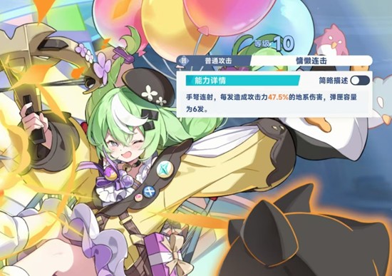 当小禾处于援助位置时,其技能价值大幅提升。释放援助技后,她会随机抛出企鹅或爱心道具,不同组合带来不同效果:若全部为企鹅,则触发七次地系范围伤害;若全为爱心,则为主控角色回复生命值并造成一次范围爆炸;若两者混合,则对敌人进行扫射。更重要的是,当企鹅数量多于爱心时,全队获得攻击力提升;反之则提升全队地系伤害。无论结果如何,该技能必定为敌人附加地系印记,极大提升了队伍后续引爆技能的覆盖率。