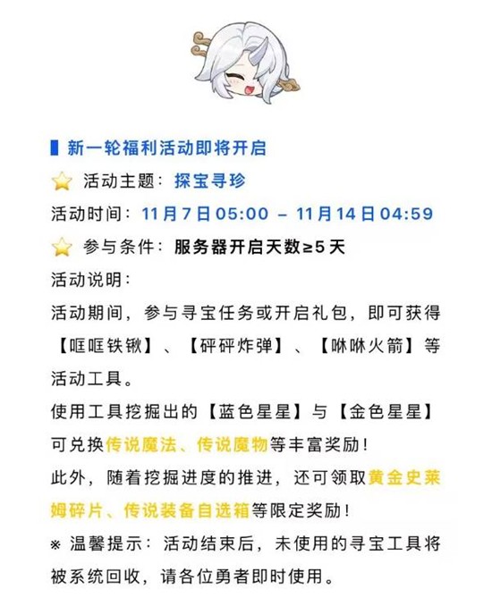 *温馨提示:活动结束后,未使用的寻宝工具将被系统回收,请各位勇者即时使用。