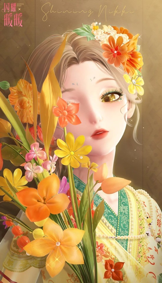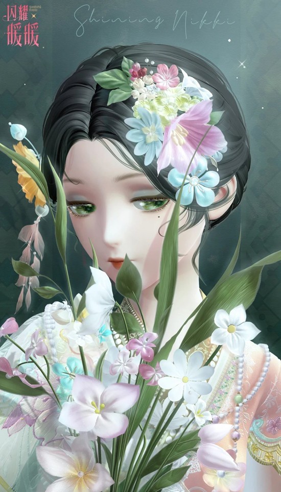挑选最美丽的花朵扎成一束,花与少女绯色的脸颊相映,不知是花更娇妍,还是人更清丽?
