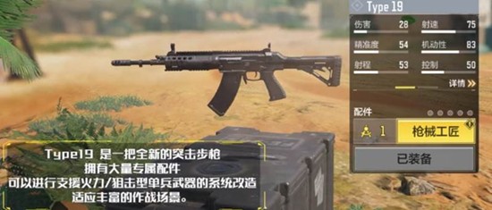 type19作为一把突击步枪,拥有75点的基础射速和较低的后坐力,这使得它在连续射击时更容易控制。不过这把武器的单发伤害只有28点,在实战中可能需要配合扩容弹匣等配件来提升作战能力。