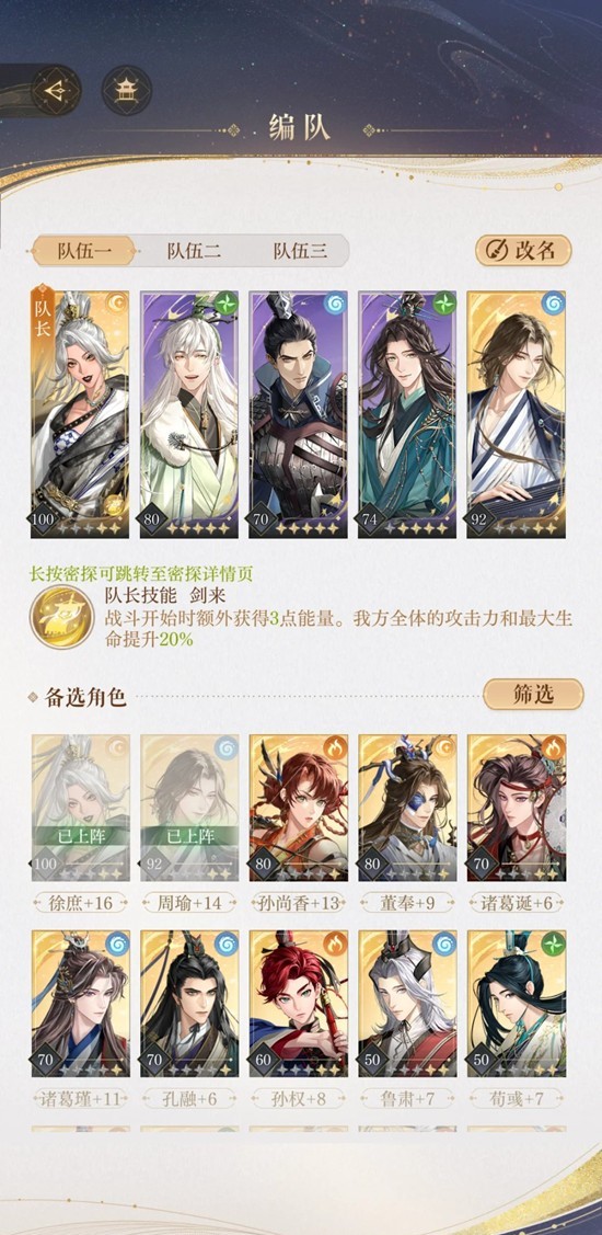 2.输出位尽量放5,3号位放开大需要能量低的并且抗揍的。ee队长加成太大了没办法,我把周瑜放5了,3号位是颜良,才70的爹抗下了所有[皱眉R]