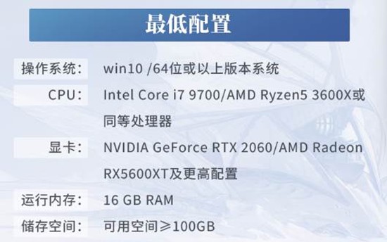 CPU:Intel Core i7 9700/AMD Ryzen5 3600X或同等处理器。虽然这可能不足以提供最高画质的游戏体验,但足以运行游戏。