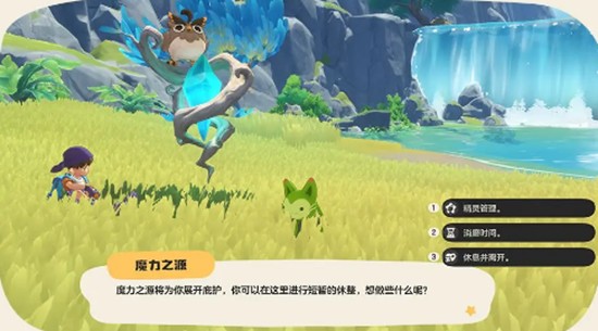 大陆上分布着多种发光点,靠近后可触发不同事件。蓝色发光点通常为资源采集点,翻找后可获得技能石、炼金材料或食用补给品,用于精灵成长和状态恢复。粉色发光点则与音乐系统相关,触碰后会播放经典旋律,并逐步解锁魔法乐章图谱。这些乐章不仅能兑换限定装饰,还能在特定地点召唤隐藏精灵,是收集党不可错过的要素。