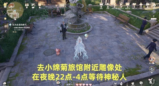 前往小绵菊旅馆附件,在晚上22点-3点的雕像处等待神秘人;