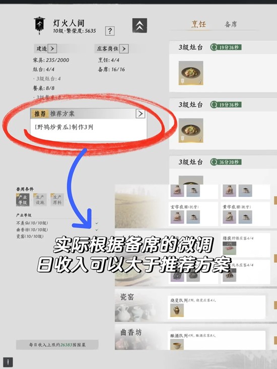 土特产庄客也可以恢复等级来产出百工簿给备席/酿酒庄客升级。