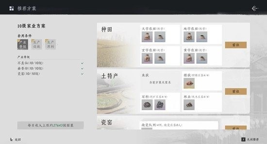 看了一下十级家业推荐方案,除了备席方案其他都可以采用。