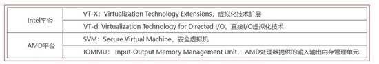 每个平台的CPU虚拟化都有两种,都需要您在BIOS里打开,分别是:
