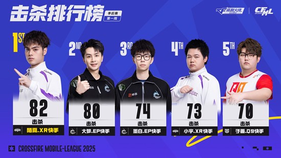 首杀榜上,大梦在决胜图卫星基地多次拿到首杀,成为EP.快手取胜的关键,他以19.32%的首杀率位列榜首。航轩展现全能身手,作为指挥的他以16.67%首杀率排名联盟第二。小九和小晨以16.36%首杀率并列联盟第三。孤麟以15.38%首杀率成功挺进前五名,这展现了他的强硬枪法。