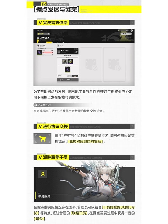 为了帮助据点的发展,终末地工业与合作方签订了物资供应协定向不同据点发布货物收购需求。