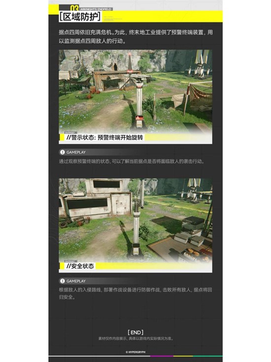 据点四周依旧充满危机。为此,终未地工业提供了预警终端装置,用以监测据点四周敌人的行动。