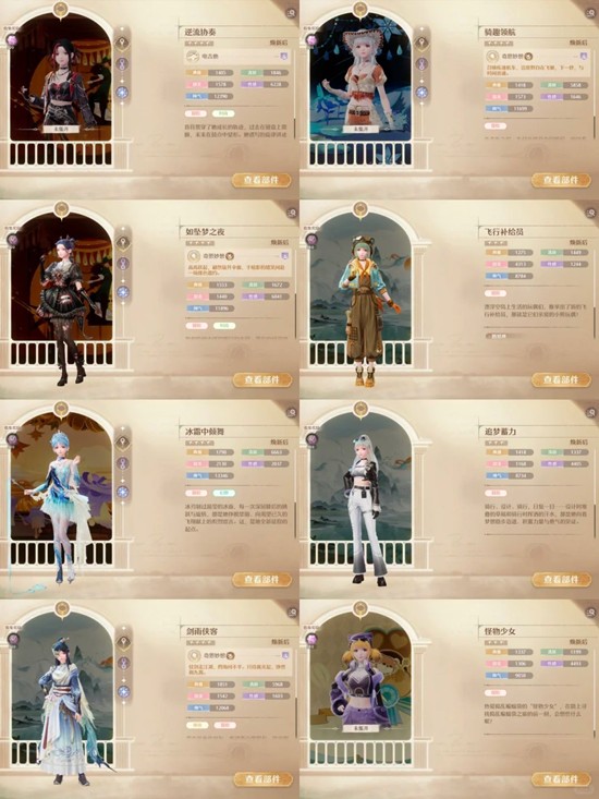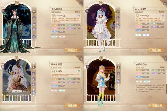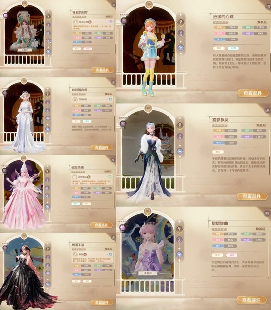 符合条件的套装有【咏叙的旧梦】【咏叹银夜莺】【仙踪奇遇】【炽羽不渝】【应援的心跳】【熠熠舞曲】【雾影飘灵】