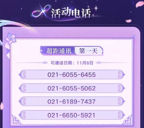 第一天(11月6日):021-6055-6455,021-6055-5062,021-6189-7437,021-6650-5921