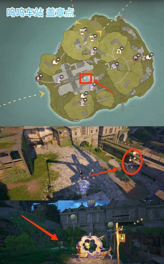 呜呜车站——传送后向左转,盖章点在下方不远处。最近传送点:呜呜车站集装中心
