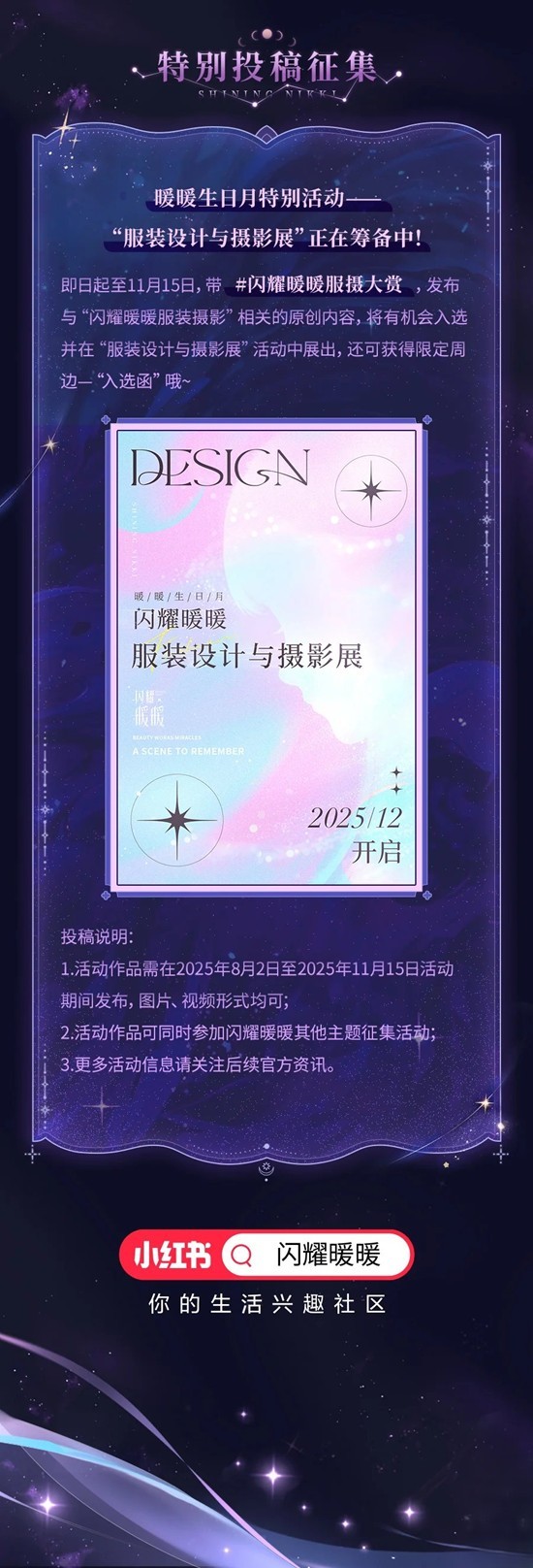 更多活动详情请在小红书内搜索“闪耀暖暖”,点击页面顶部的活动海报,直达活动页面了解。