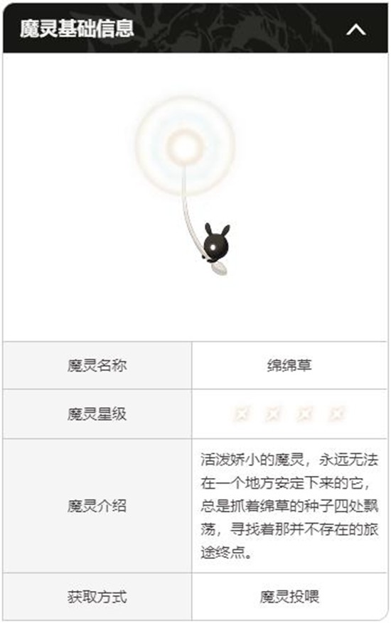 获取方式方面,二重螺旋绵绵草可通过魔灵投喂系统直接获得,无需参与高难度活动或抽取稀有卡池。这一设定大大降低了新人玩家的培养门槛,使其能在游戏早期就组建起具备治疗与抗压能力的队伍配置。由于技能机制简单直观,不需要复杂的操作时机判断,非常适合刚接触二重螺旋的新手玩家作为过渡期的核心辅助使用。