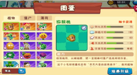 在植物大战僵尸3的金卡植物中,猕猴桃凭借其低阳光消耗和广域攻击范围脱颖而出。基础形态下就能覆盖多条战线的攻击能力,使其在前期过渡阶段表现优异。完成进化后,猕猴桃转变为熔火猕猴桃,攻击方式升级为范围火焰喷射,每一次输出都附带高额伤害,对成群推进的僵尸具有极强的压制力,是植物大战僵尸3中少有的兼具性价比与爆发力的金卡单位。