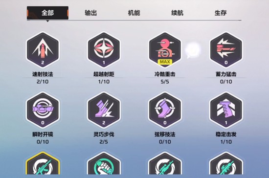 卡拉彼丘的天赋共分为四大方向:输出、续航、生存与机能。输出类天赋主要增强技能伤害与武器威力;续航类提升能量恢复与弹药补给效率;生存类则侧重生命值、护盾强度及受击回复;机能类涉及技能冷却缩减、移动速度与交互响应等全局性能。每个方向都对应不同的战斗需求,玩家可根据常用角色的定位和自身操作习惯进行选择。