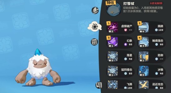 雪豆丁最核心的机制在于其独特的“打雪仗”特性。在它尚未上场时,只要己方其他宠物使用了一次冰系技能,雪豆丁就能积累一点能量。这种设计使得雪豆丁非常适合放在后手位置,配合队友的冰系输出进行能量储备。当能量积满后,部分技能的威力或效果会得到显著提升,因此合理规划上场时机和能量衔接是使用雪豆丁的关键所在。在洛克王国世界的战斗体系中,这一机制让雪豆丁具备了较强的战术延展性。