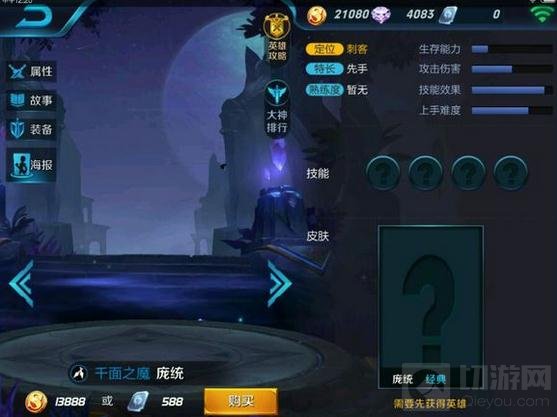 庞统售价13888金币或588点券,定位刺客,先手英雄,一段位移,两个控制技能,对于一个13888的刺客来说,还是性价比比较高的。