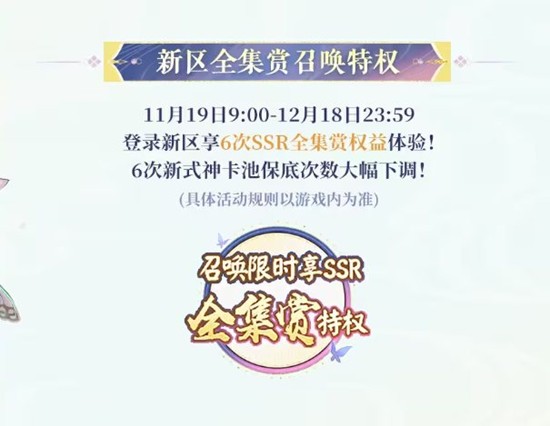 新区开放期间,玩家登录新区即可享受6次SSR全集赏权益体验,6次新式神卡池保底次数大幅下调,让玩家在新区的起步更加顺畅。