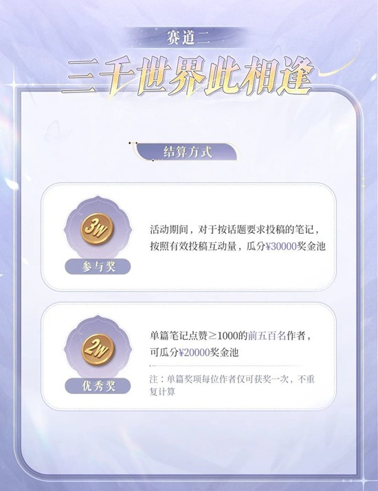 参与方式:围绕 “那天意待吾不薄”、“三千世界此相逢”两大赛道,根据具体赛道要求携带全部话题发布,即可参与活动。