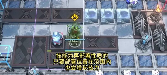 当我方干员部署在圣女像的作用范围内则圣女像将固定增长3点技力对于任意再部署性质的技能也会为圣女像增长技力,但受“雪崩”影响的单位再部署不会增长技力
