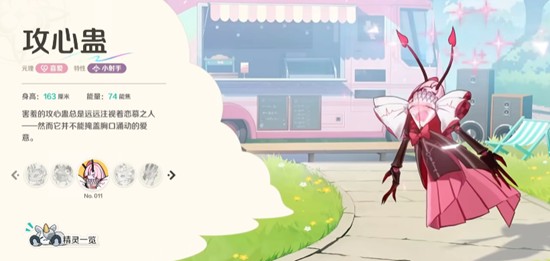 攻心蛊属于喜爱元理体系下的稀有精灵之一,在当前版本中具备独特的成长机制。其元理属性为“喜爱”,这类精灵在游戏中数量较少,因此一旦激活相关羁绊将带来显著优势。攻心蛊的基础身高为163cm,能量消耗为74能焦,在同类精灵中属于中高耗能单位。该精灵最特别之处在于能够基于自身基础数值提升生命上限,并在战斗开始时自动生成一件“爱之戒”。这件装备专属于喜爱元理精灵,只有他们才能穿戴并触发后续效果。