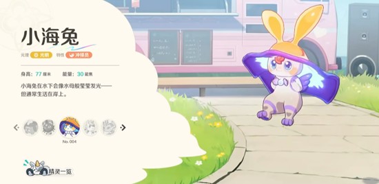 小海兔是崩坏因缘精灵中一名定位为冲锋员的前排单位,身高77cm,能量值为30能焦,基础属性偏向生命值和近战输出能力,在前期资源有限的情况下具备较高的性价比。由于其拥有光明属性的元理特性,能够在战斗中为团队提供一定的生存增益效果。作为先锋角色登场时,小海兔可以有效吸引敌方火力,承担部分伤害,同时利用自身机制为队伍创造更有利的作战环境,属于攻守兼备型的过渡角色。