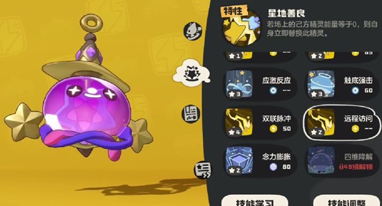 该技能是小皮球战术体系的核心之一。在替换上场时,小皮球可为队友直接提供8点能量,大幅加快技能循环节奏。这一效果使得被换下的精灵在重新入场后能迅速释放关键技能,尤其适合配合高耗能的大招型角色。在节奏紧凑的PVP环境中,能量的恢复速度往往决定战局走向,而小皮球正是掌控节奏的关键单位。