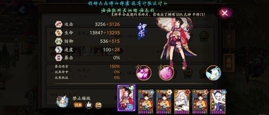 ssr千姬(火灵,最低生命,让她先被啃掉,否则平a会触发荒酱自回血)